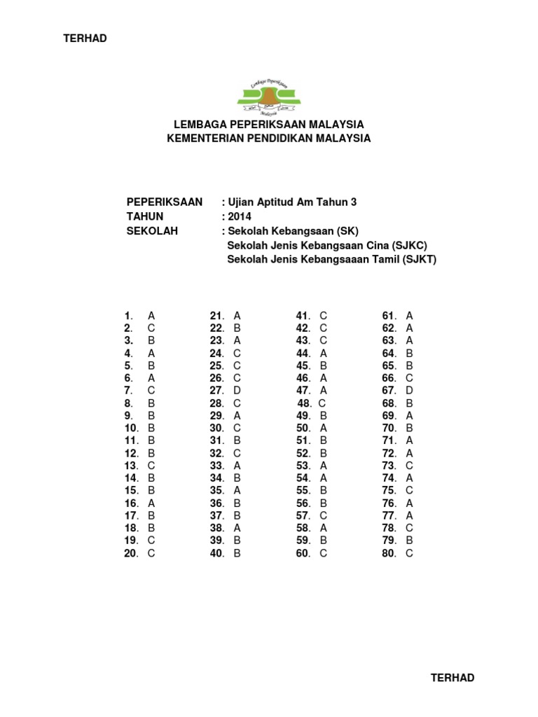 Ujian Aptitud Am Tahun 3 Sk 2015